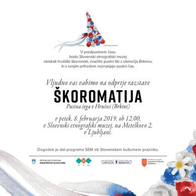 8. februarja je v razstavni hiši Slovenskega etnografskega muzeja potekalo odprtje razstave Škoromatija: pustna šega v Hrušici (Brkini). Odprtje razstave je v muzej privabilo lepo množico obiskovalcev, ki so jih uvodoma pozdravili direktorica SEM Tanja Roženbergar, avtorica razstave Adela Pukl in predstavnik Kulturnega društva Hrušica Danijel Cek. Na razstavi so ...