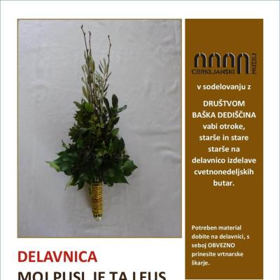 Vabljeni na delavnico izdelovanja cvetnonedeljskih butar z naslovom "MOJ PUSL JE TA LEUS", ki bo v sredo, 21. marca ob 16. uri v Cerkljanskem muzeju. Delavnico bodo vodili člani Društva Baška dediščina. Izdelovanje cvetnonedeljskih puslov (butar) je bilo v letu 2013 vpisano v Register nesnovne kulturne dediščine. VABILO