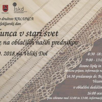 Vabljeni na klekljarski dan, ki ga 13. oktobra 2018 v Velikem Dolu organizira Kulturno društvo Kalunca. Letos so osrednja tema čipke na oblačilih prednikov, zato so pripravili dve delavnici. Prva, klekljanje pečne čipke, je namenjena bolj izkušenim klekljaricam, druga, šivana čipka, pa je primerna za vse ljubitelje ročnih del. Obe ...