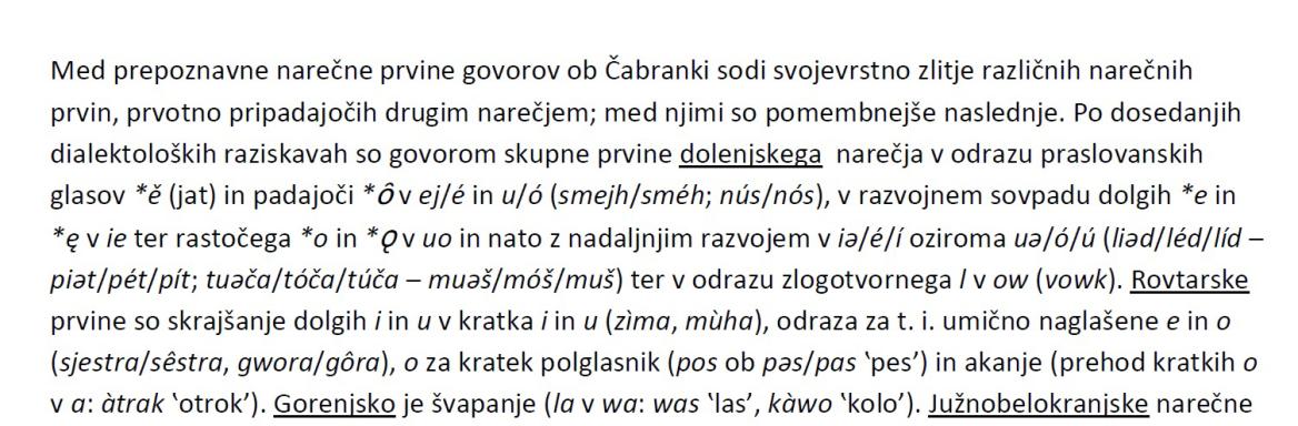 Govori ob Čabranki in zgornji Kolpi od Babnega Polja do Mirtovičev so mešanica dolenjskega, rovtarskih, gorenjskega in južnobelokranjskega narečja z vplivi nemškega jezika Kočevarjev in sedanjega hrvaškega in slovenskega knjižnega jezika.