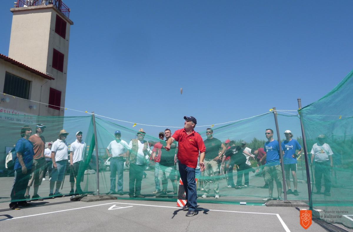Breadcrumb Naslovnica Enote Pandolo Pandolo Pandolo je tradicionalna istrska družabna in športna igra. Dve ekipi s po tremi igralci tekmujeta v osvajanju ozemlja. Ošiljeno leseno paličico (pandolo) skušata z leseno palico (maco) odbiti čim dlje od začetne točke (baze) v označeno igrišče. Slike nosilcev EID2-00019 Datum vpisa7. Marec 2013 Zvrstuprizoritve in predstavitve Podzvrstiigrefolklorno turistične prireditve Gesladružabna igrašportna igratekmovanje Daljši opis v registru2-00019 Pandolo sl:Enote:Pandolo [edit]