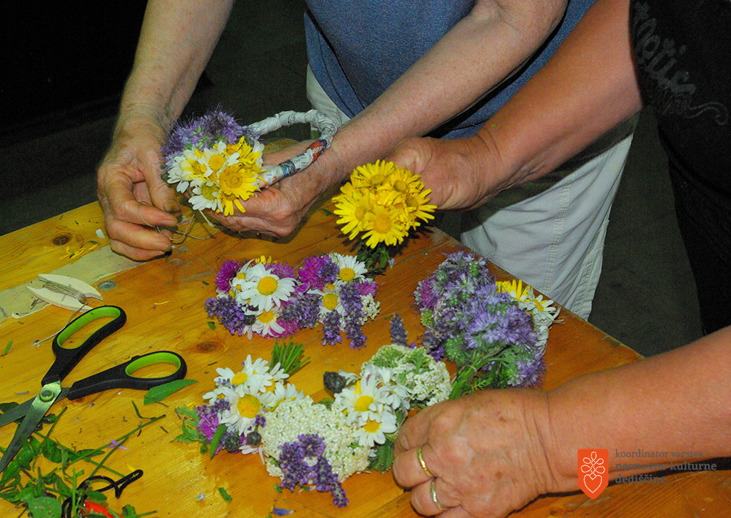 Breadcrumb Naslovnica Enote Spletanje venčkov sv. Ivana Spletanje venčkov sv. Ivana Spletanje venčkov sv. Ivana na kresni večer in njihovo obešanje na vrata domov je značilno za vasi na Krasu. Šega temelji na ljudskem verovanju v posebno moč rastlin, nabranih na kresni večer, ki naj bi ljudi in domove varovale pred nesrečami. Slike nosilcev EID2-00020 Datum vpisa22. Marec 2013 Zvrstšege in navade Podzvrstiletne šege Geslakresovanjeoblikovanje zelenjaspletanje venčkovsv. Janez Krstnik Daljši opis v registru2-00020 Spletanje venčkov sv. Ivana sl:Enote:Spletanje venčkov sv. Ivana [edit]