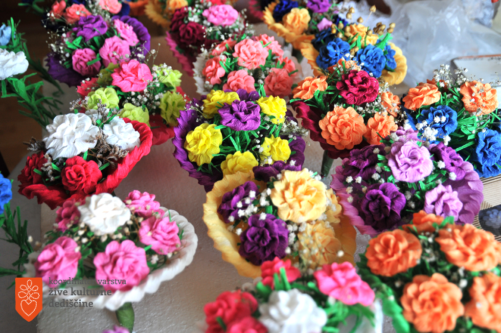 Enota Izdelovanje papirnatih rož je bila v Register žive kulturne dediščine vpisana v aprilu 2012. V Registru žive kulturne dediščine je trenutno evidentiranih 8 nosilcev enote.