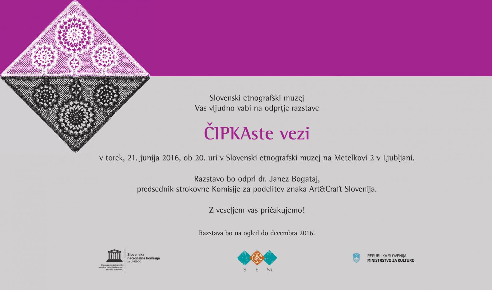 Najstarejša ohranjena čipka na Slovenskem (Narodni muzej Slovenije – Metelkova, 18. - 26. junij 2016)Čipka (MGML, Mestni muzej Ljubljana, 16. 6.–2. 10. 2016)