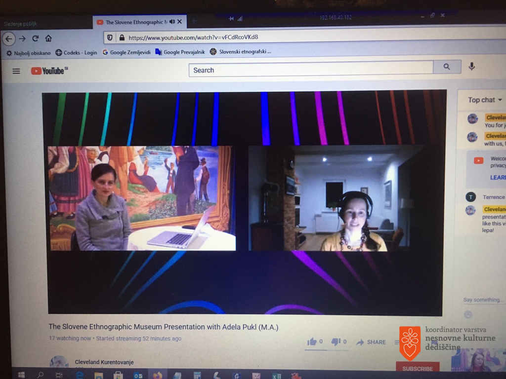 Mag. Adela Pukl, kustosinja za duhovno kulturo v Slovenskem etnografskem muzeju, ki aktivno deluje tudi v okviru Oddelka Koordinatorja varstva nesnovne kulturne dediščine, je v sklopu prireditve Kurentovanje Cleveland 2021 v sredo 10. 2. 2021 preko spleta uspešno izvedla predavanje Traditional Carnivals in Slovenia and Their Changes Over Time, v katerem je predstavila pustne šege v Sloveniji in njihovo spreminjanje skozi čas.