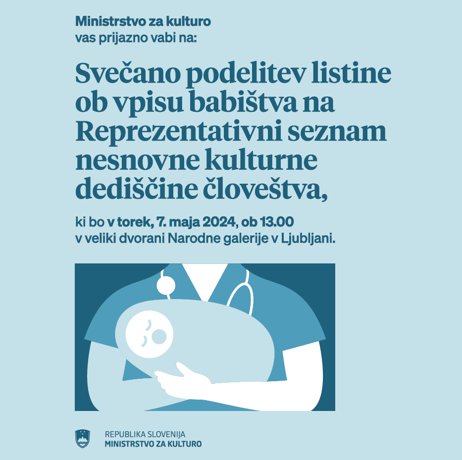 V veliki dvorani Narodne galerije v Ljubljani je v torek 7. maja 2024, v organizaciji Ministrstva za kulturo in partnerjev, potekala svečana podelitev listine ob vpisu babištva na Unescov Reprezentativni seznam nesnovne kulturne dediščine človeštva. Multinacionalna nominacija Babištvo: znanja, veščine in prakse je bila na Unescov Reprezentativni seznam vpisana 6. decembra 2024.