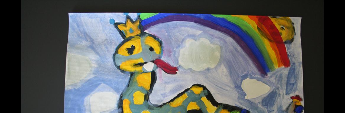 Žana Pintarič, Osnovna šola Belokranjskega odreda Semič, 3. razred, 8 let – Kočevarska pravljica o kači velikanki, ognju in stolpu (tempera).