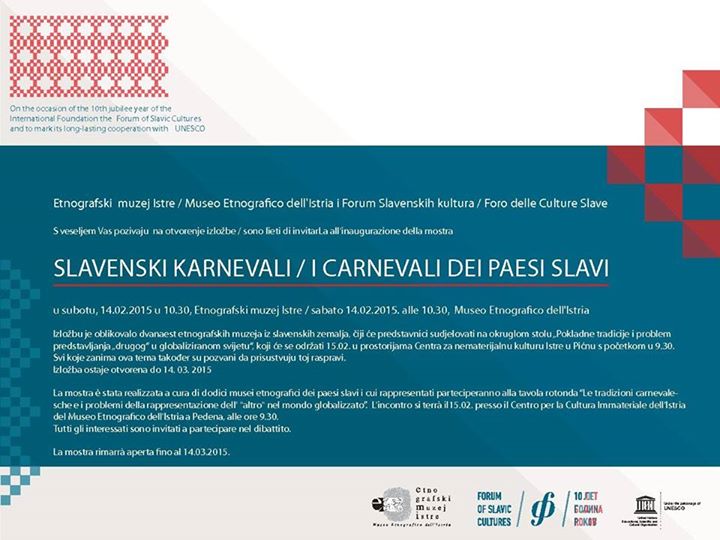 Razstava Slovanski karnevali, ki je bila v mesecu juniju 2014 odprta na sedežu Unesca v Parizu, sedaj pa potuje med 12. sodelujočimi državami, je bila 14. 2. 2015 odprta v Etnografskem muzeju Istre v Pazinu. Odprtja razstave, na kateri so predstavljene tudi pustne skupine iz Slovenije, so se udeležili tudi predstavniki Koordinatorja.
