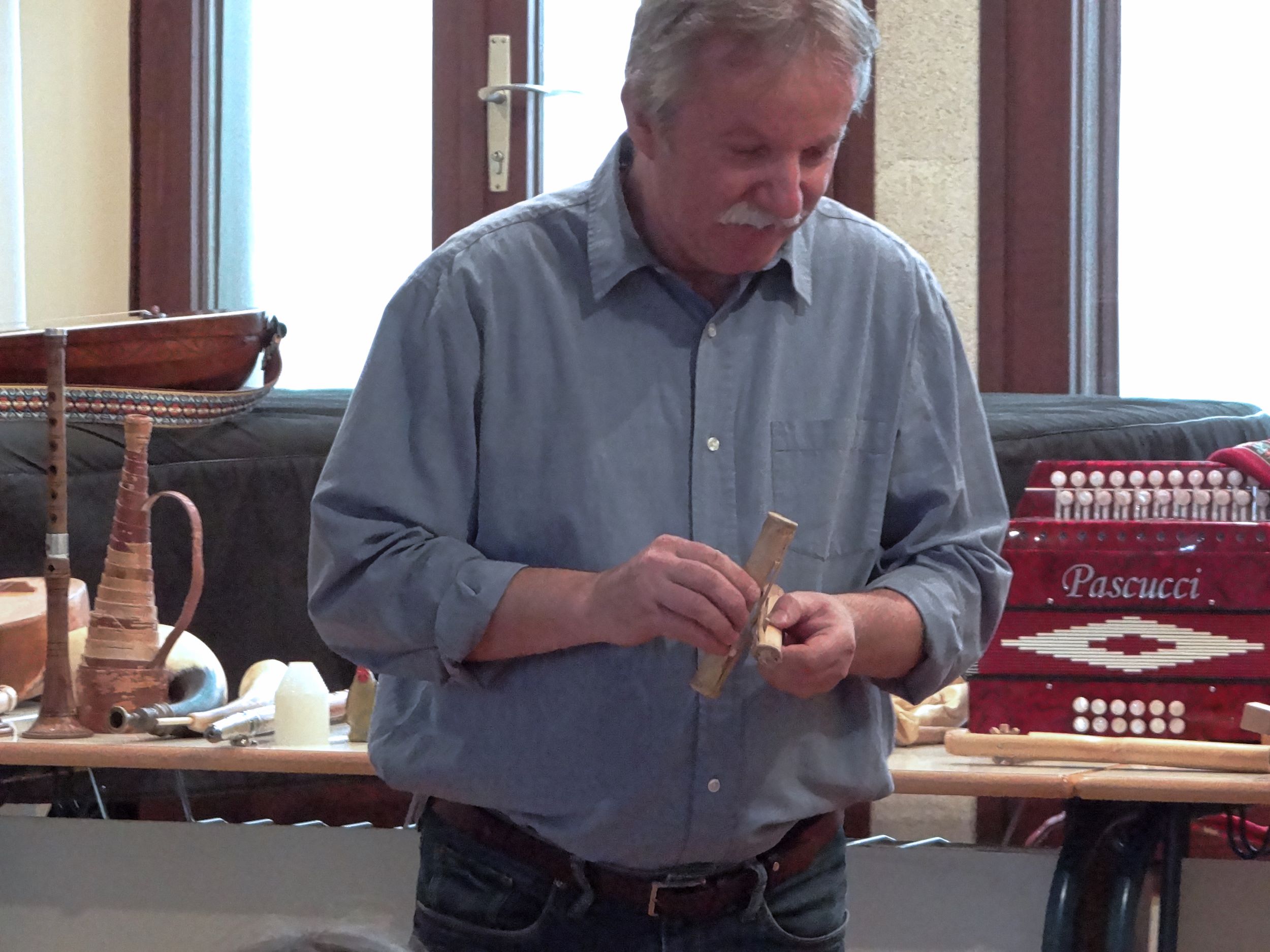 Izdelovanje preprostih ljudskih glasbil: Izdelovanje preprostih ljudskih glasbil iz naravnih materialov obsega izdelavo glasbil, ki se uporabljajo kot zvočne igrače otrok, za kratkočasje in zabavo mladine ter odraslih, občasno pa nadomeščajo obrtniško in tovarniško narejena glasbila. Izdelana so ročno in namenjena predvsem lastni uporabi.